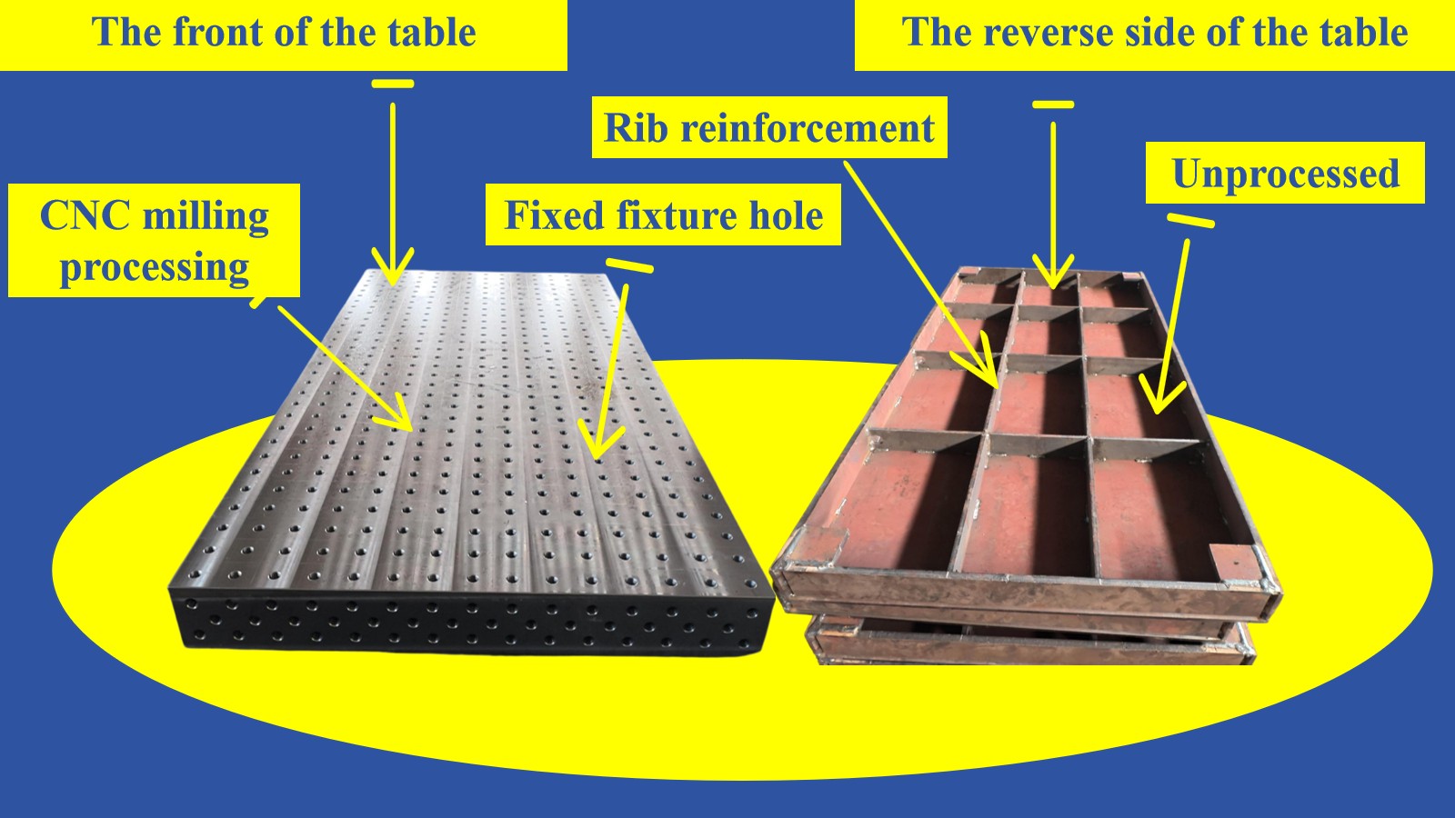 Multifunktsionaalne kohandatavus: lauaplaadil on eelnevalt puuritud positsioneerimisaugud ja kinnituste kinnitusasendid erinevate tööriistade kinnitusdetailide kiireks kinnitamiseks, mis ühilduvad erinevate protsessidega, nagu käsitsi kaarkeevitus, argooni kaarkeevitus ja varjestatud gaaskeevitus.